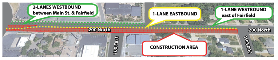 200 North Reconstruction and Utilities Project UpdateTraffic patterns have been altered from Main Street to 300 East to accommodate a change in construction activities. All traffic has been shifted to the north side of 200 North as water lines are installed on the south side of the road. Main Street to Fairfield road has been reduced to two westbound travel lanes and one eastbound travel lane. The intersection of Fairfield Road and 200 North will remain open to all traffic movements. There will be no parking on the shoulders of 200 North in the construction zone during this work. Visit https://www.kaysville.gov/CivicAlerts.aspx?AID=673 for more information. We appreciate your patience during this time of construction. If you have any questions or concerns, please reach out to our project-dedicated public involvement team at (385) 493-0814 or by emailing kaysville200north@jub.com.