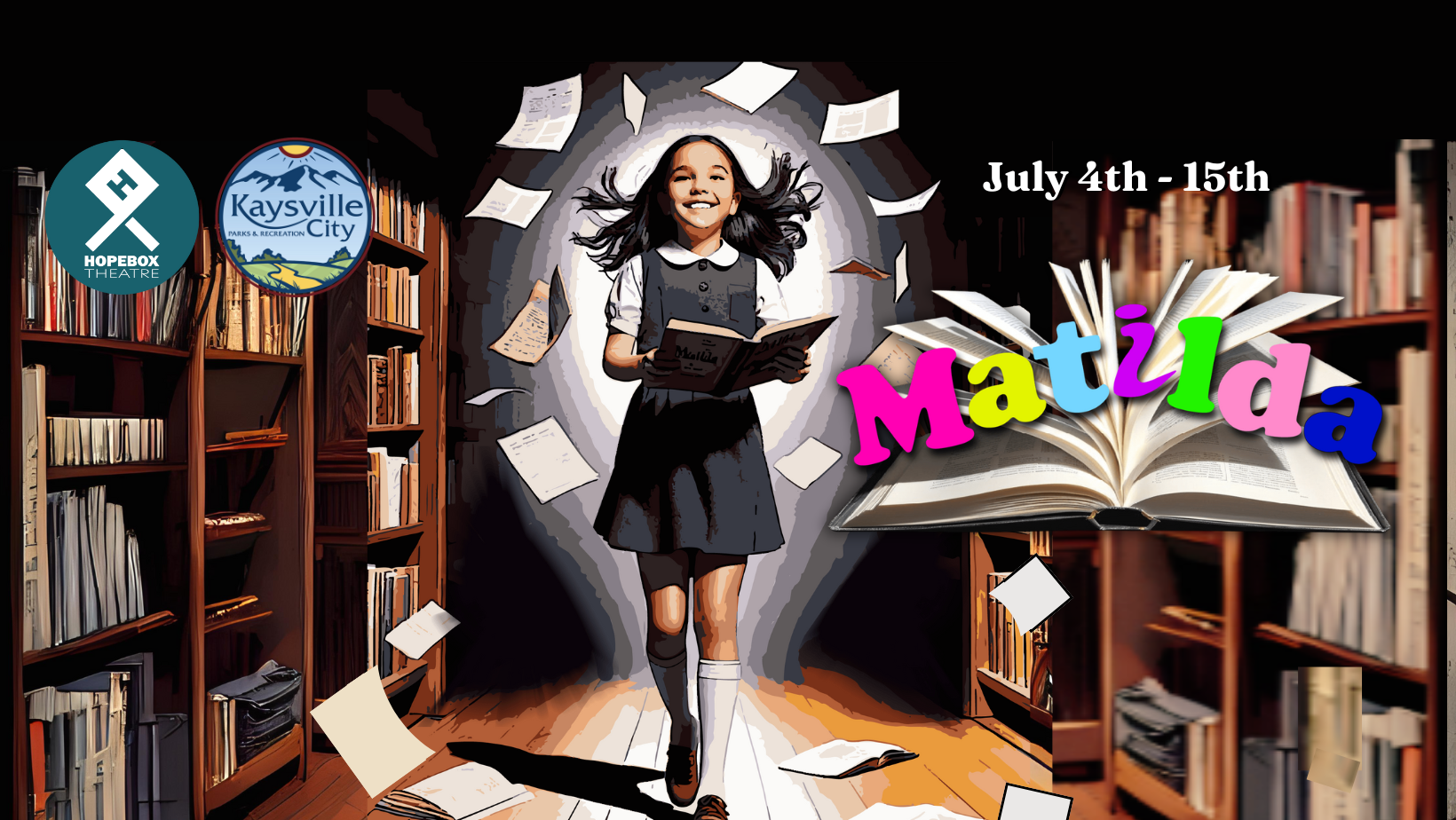 Hopebox Theatre & Kaysville Parks and Rec Present: MatildaKaysville City is excited to partner with Hopebox Theatre for an incredible summer production of Matilda! Join us July 4–15, 2025, for this exciting performance. Interested in auditioning? Visit: Matilda Auditions (Auditions will be held on April 8 and 9 from 7-10 p.m.)